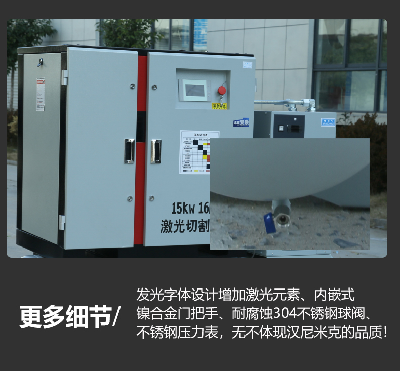 15KW16公斤激光切割专用365网站余额截图_365bet开户地址_365bet取款要多久到账 (第三代)优化了内部管道,减少了空气走过多多余管道造成能量的流失,使布局更加合理,产品更加美观,接口更少,压力差小,极大的防止了漏气漏油,更加提升产品品质。
